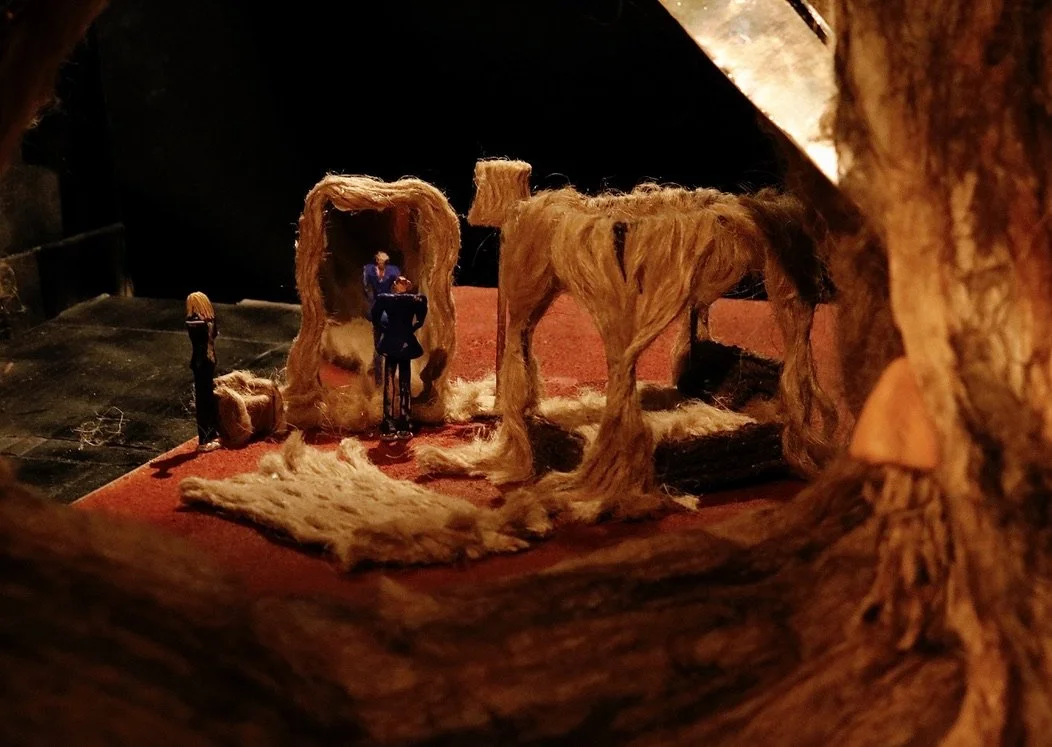 The brief for the Prague Quadrennial entries is Rare. Inspired by the first scene of the Opera, which is based in a barber shop, the set is made entirely of hair with a massive pair of scissors, instead of curtains, centre stage.